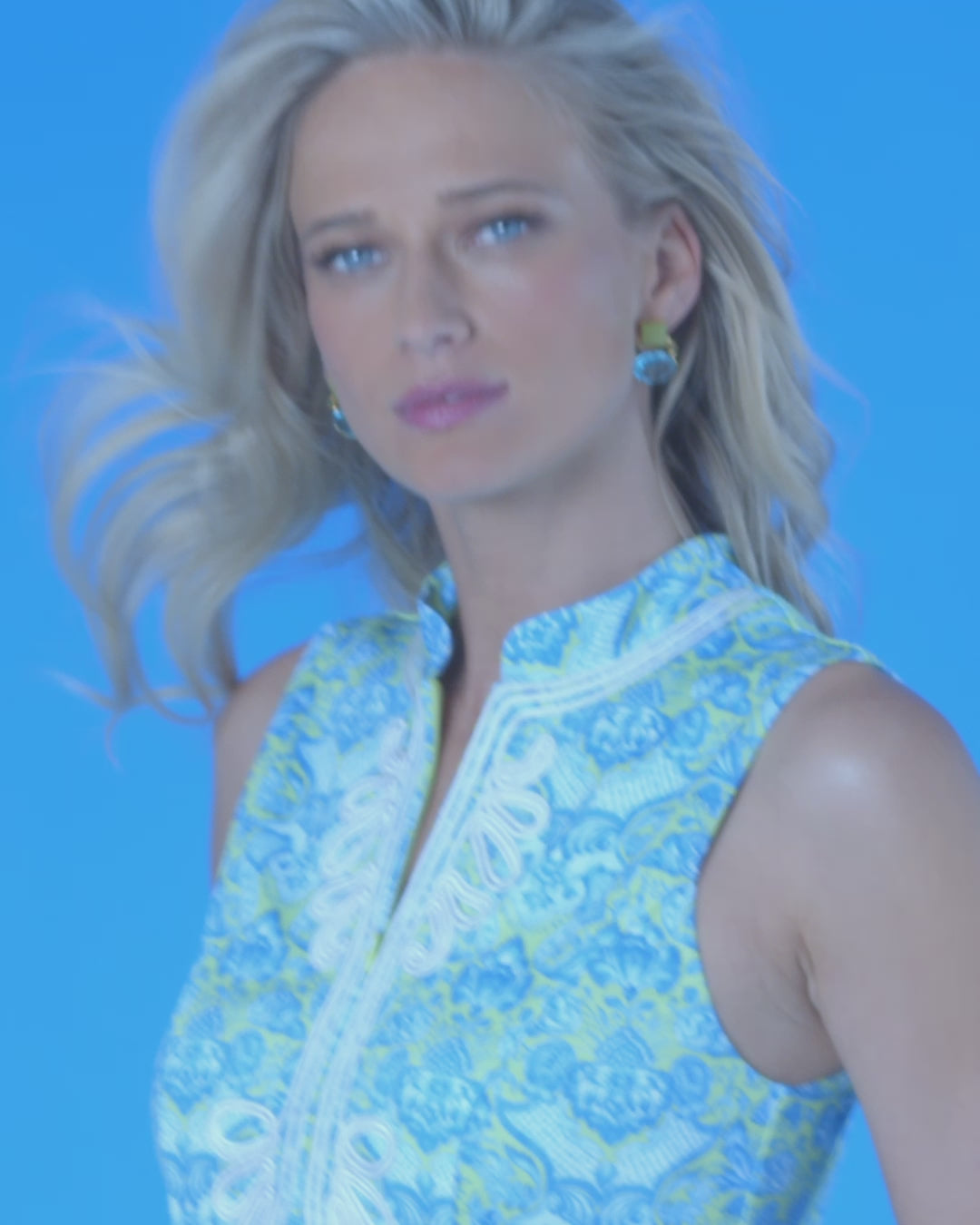 Our Blaine Dress is a most versatile dress that adds a dash of preppy flair and is equally at home on Madison Avenue as it is at a chic poolside soirée. Crafted of stretch, wrinkle resistant ponte, the dress is polished and very comfortable. The neckline zipper may be zipped down for a low cut v-neck or zipped all the way up for coverage. The Amalfi porcelain floral print was inspired by the legendary Shalimar gardens that were built by a Mughal emperor for his beloved wife–in refreshing turquoise on mint julep hues.