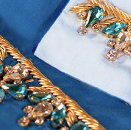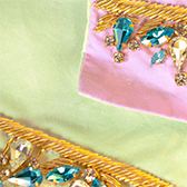 Our reversible Maharani sash belt cinches to accentuate the waist to achieve a regal look reminiscent of Mughal maharajas or Russian Imperial courts. Exquisitely hand embroidered with exquisite crystals and centuries' old Indian gold embroidery known as zardozi, this belt will elevate any look. We developed a special mix of reversible Sunset Lavender and Ambrosia Green colors to coordinate beautifully with any of our pastel tunics.