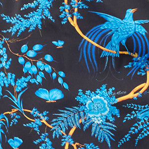 A timelessly chic silhouette, the Natalie Dress in Midnight Garden is an elegant statement for any formal occasion. Its intricate print evokes a nocturnal garden of delicate blossoms and birds, inspired by 18th-century chinoiserie lacquered screens. Forgiving around the midriff, the dress can be effortlessly cinched with a belt to define the waist. Crafted in a satin-finish fabric, it exudes understated sophistication and formal allure.